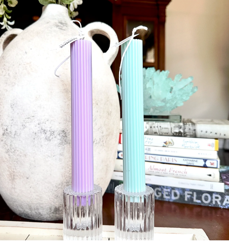 A refined round pillar with a raised base and soft vertical striations—echoing the tactile calm of hand-poured wax. Muted Morandi tones bring balance and quiet sophistication to shelves, mantels, and tablescapes.