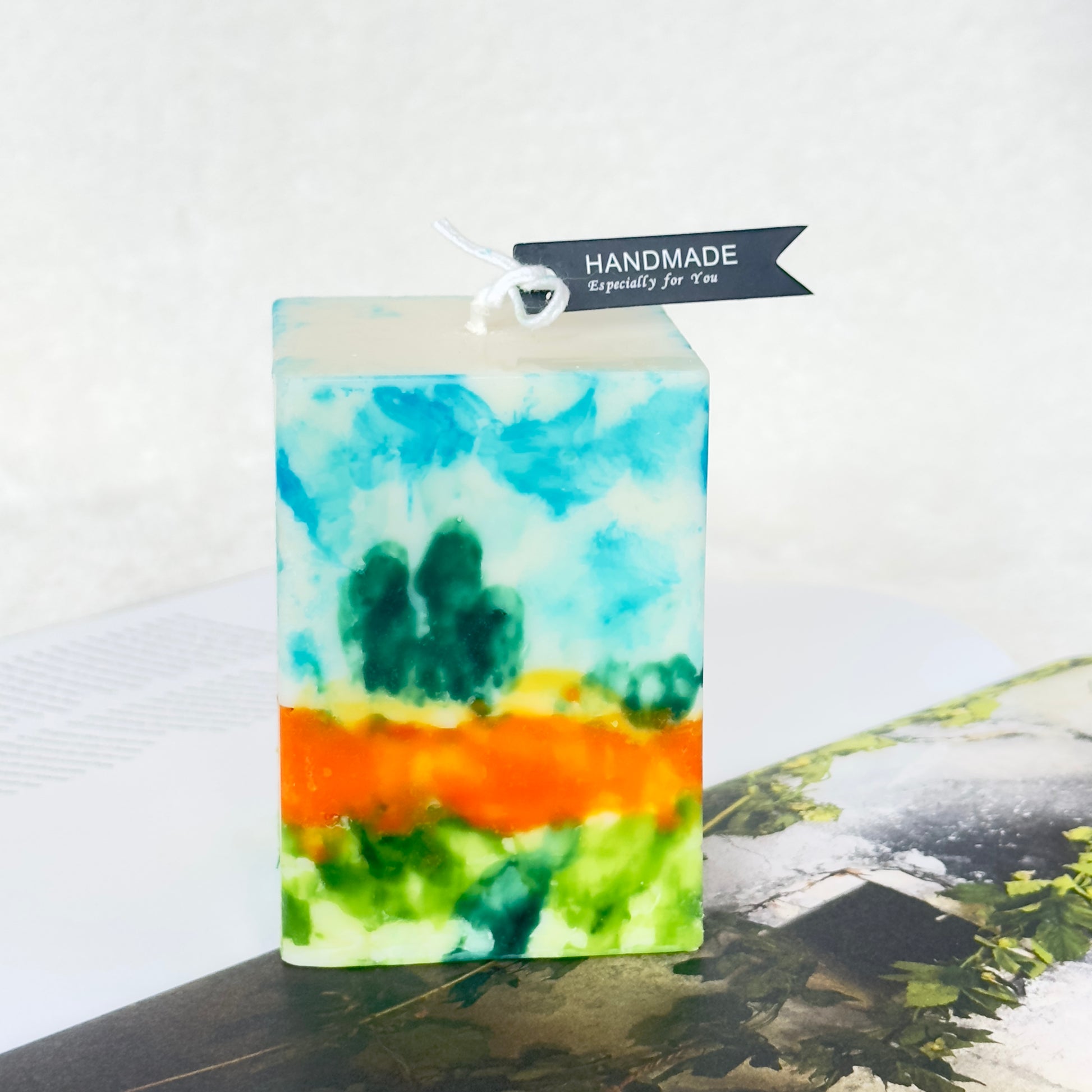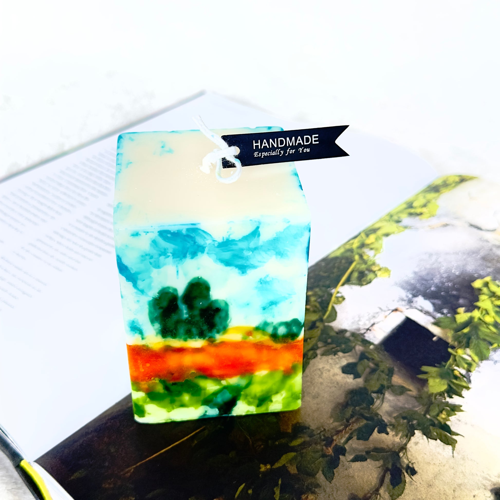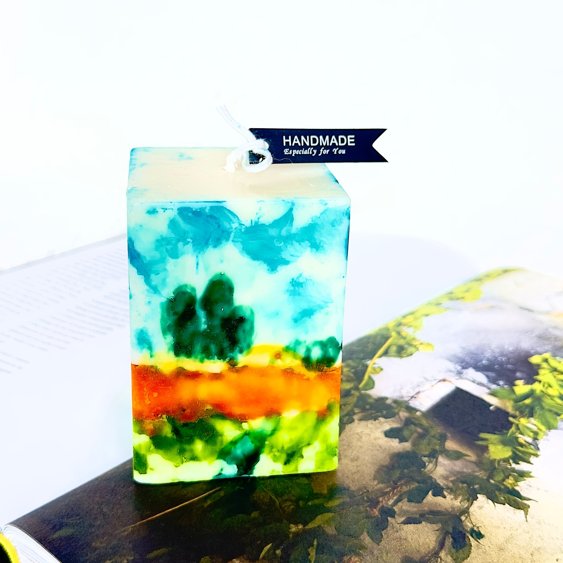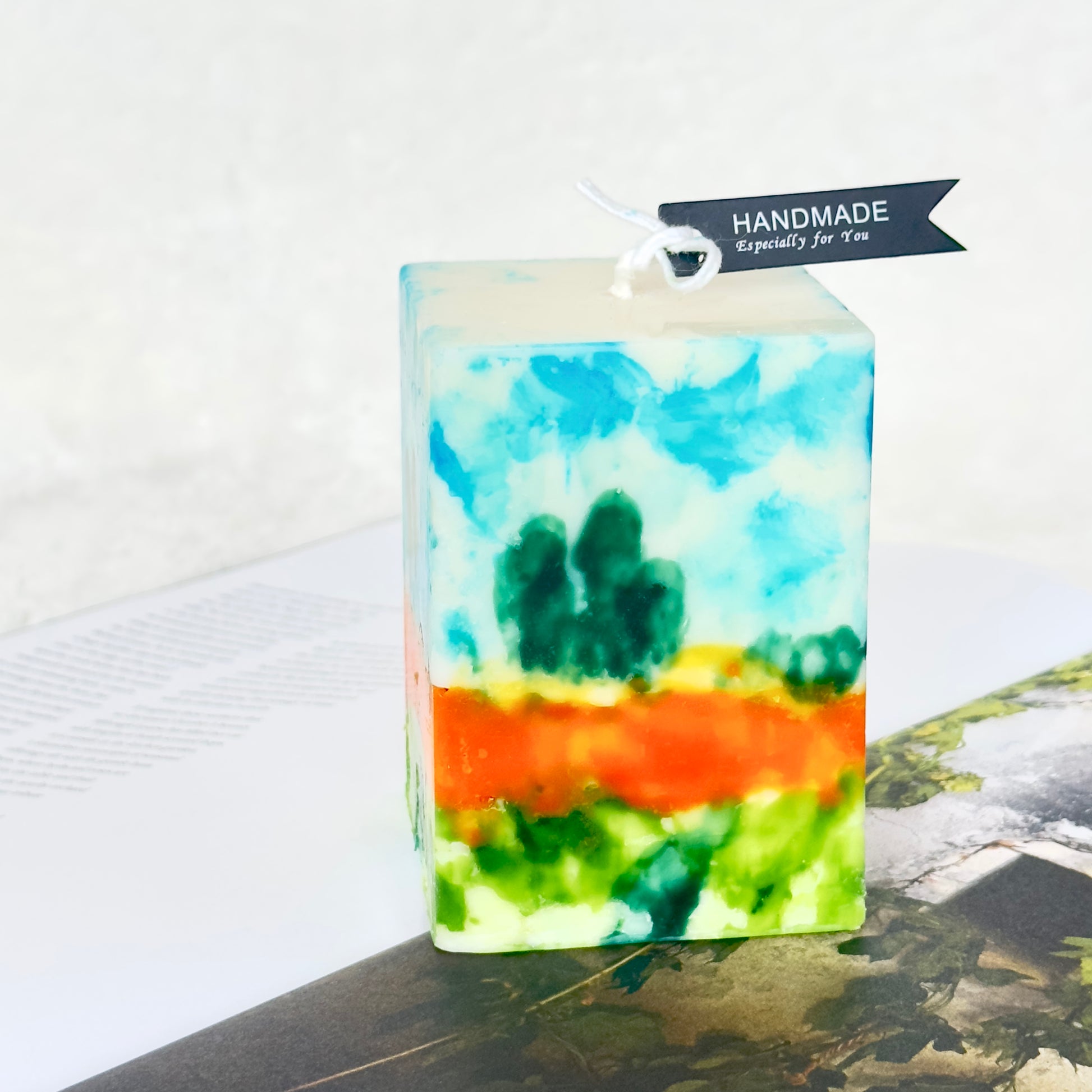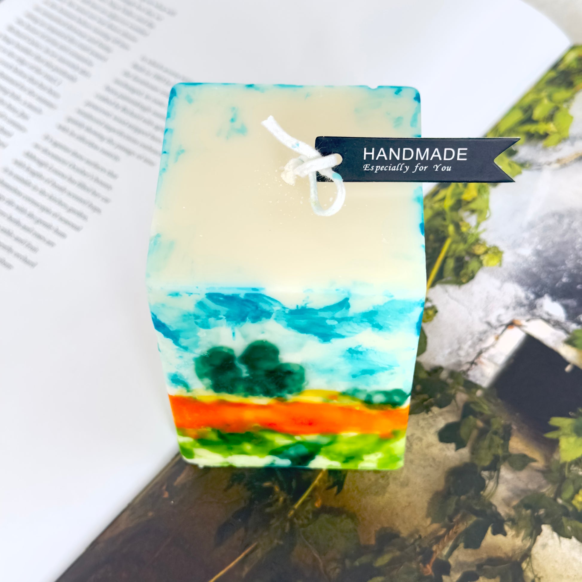 Each candle is uniquely hand-painted; variations in brushstroke, hue, or composition are part of its artistic character and not considered flaws.