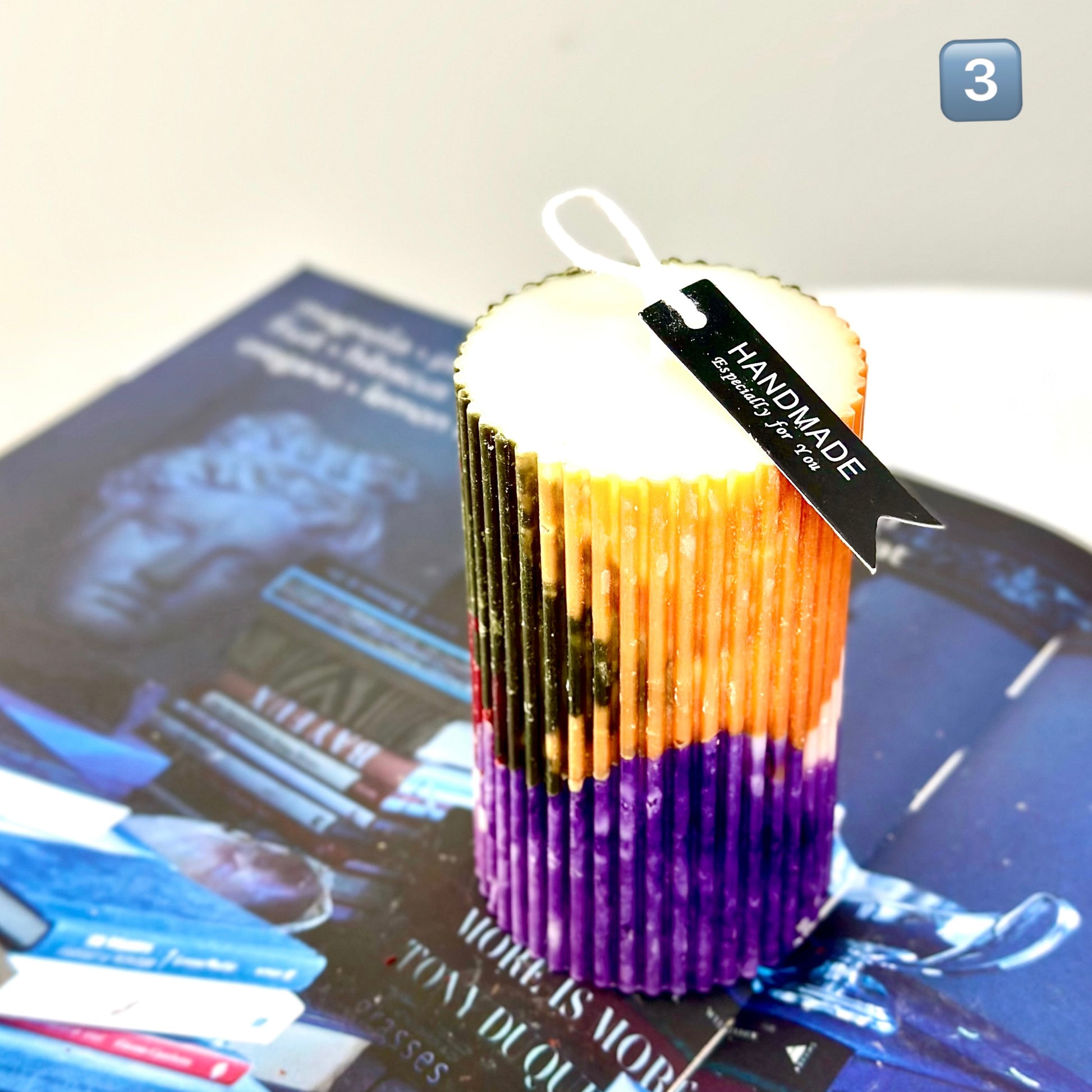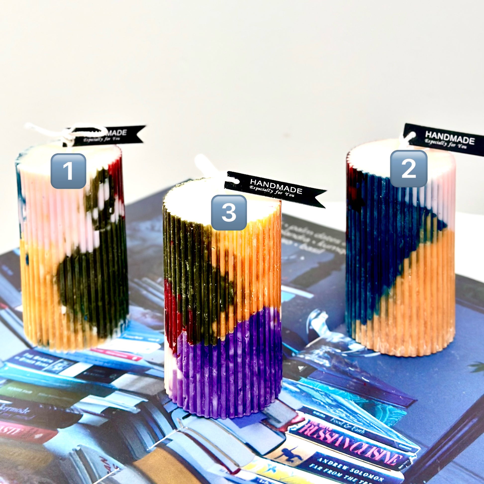 Note: Each candle is entirely one of a kind — its exterior colors and layered fragrance will vary, embracing the uniqueness of spontaneous artistry. Color variations may range from soft blush and amber to deeper green and violet accents, as each pour forms its own chromatic balance within the series.