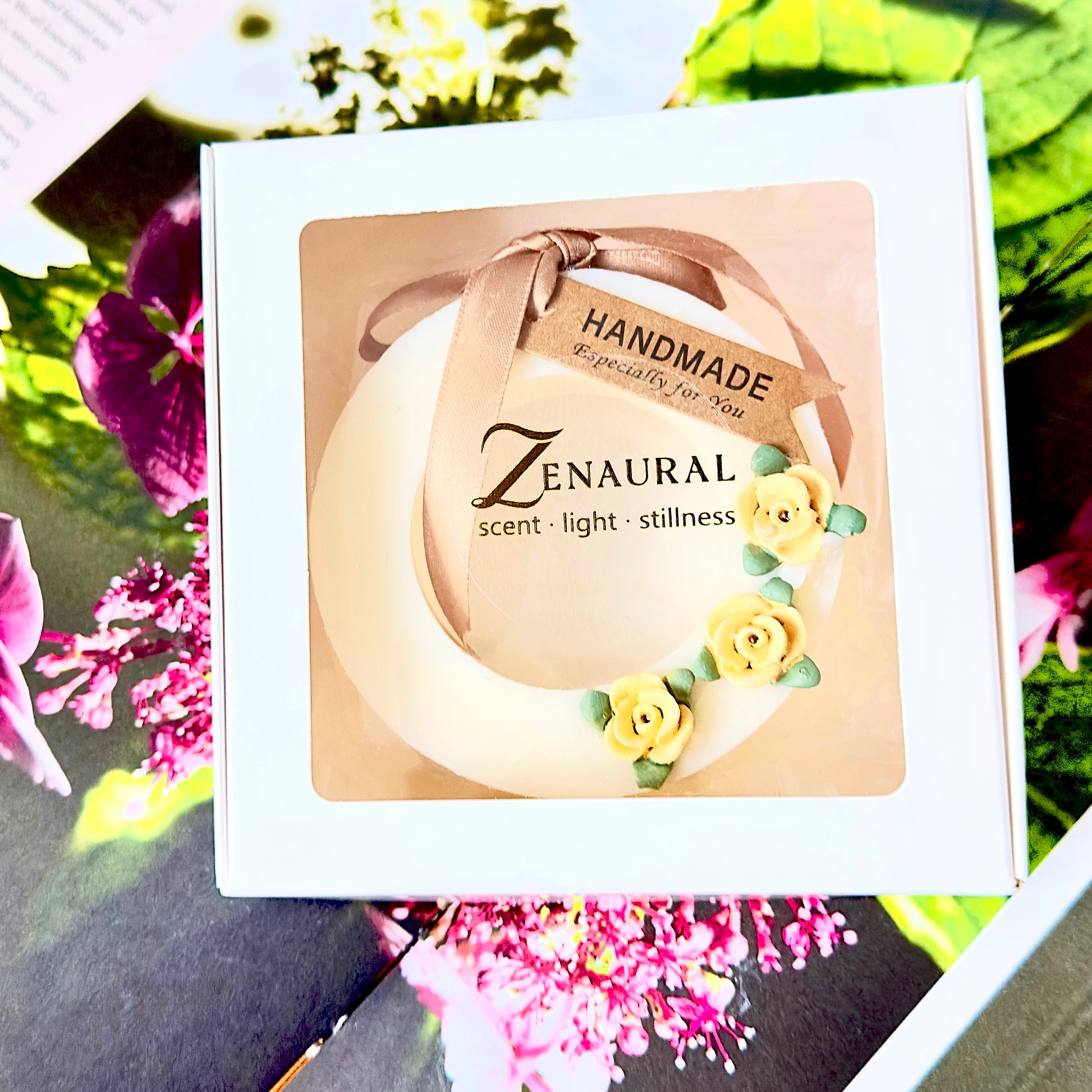 - Unique ring-shaped wax sachet with rose detail