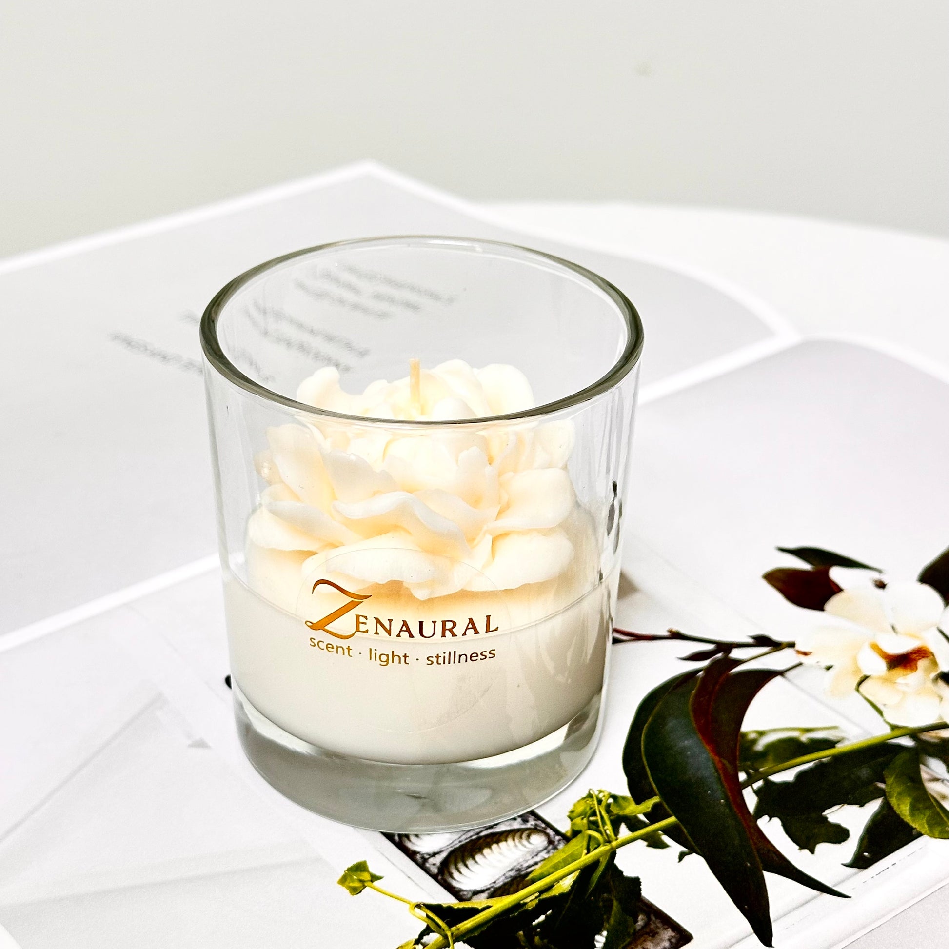 Soft, calm and luminous — Ivory Whisper features an ivory sculpted wax bloom over a pure white NS-55 base. The palette stays minimal while the fragrance wraps the space in gentle florals and tea-like clarity. Designed for gifting year-round, from serene homes to winter weddings.